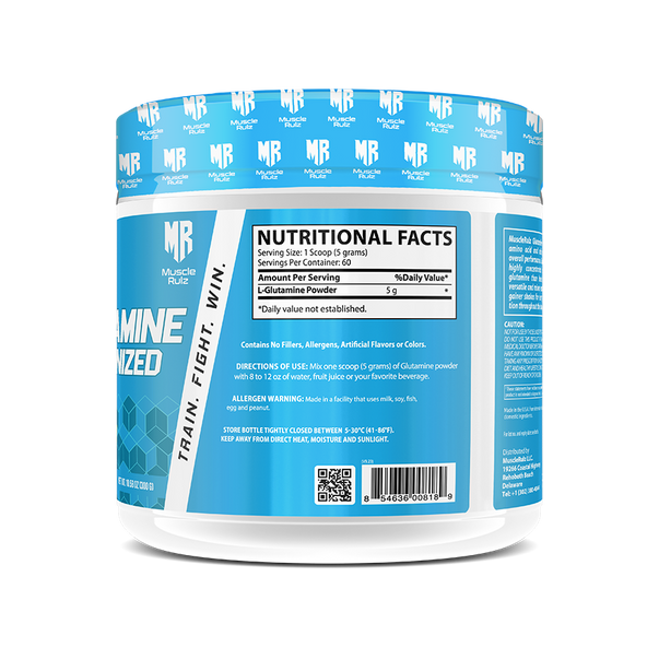 DIRECTIONS OF USE: Mix one scoop (5 grams) of Muscle Rulz Glutamine powder with 8 to 12 oz of water, fruit juice, or your favorite beverage.